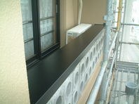 足場工事、下地補修工事、シーリング工事、塗装工事、防水工事、長尺シート貼り工事、その他雑工事を行いました。磁器タイルの落ちかけている部分を新しい磁器タイル(既設のものが廃番でしたので新たに作成)で貼り替えました。鉄製の笠木をアルミ製に取替ました。